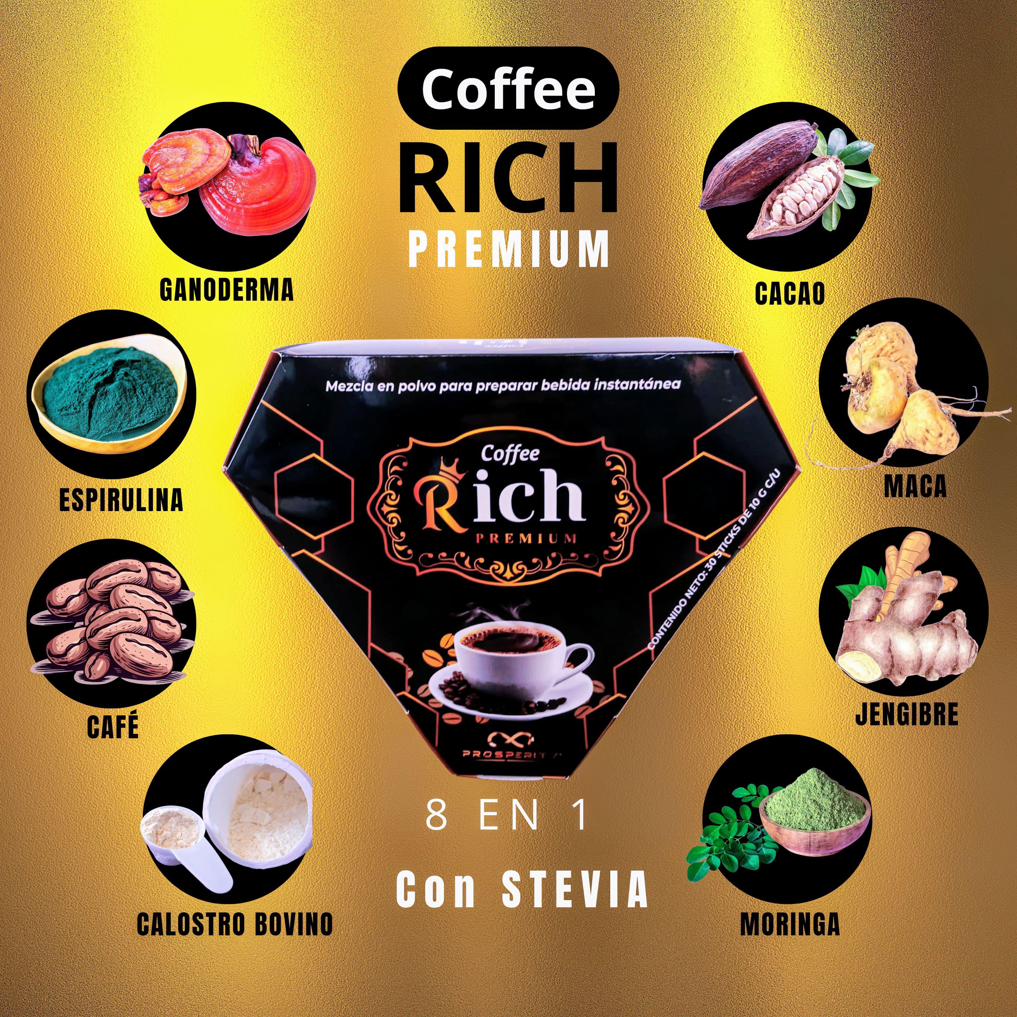 Disolver 1 stick de Coffee Rich Premium, en 300 ML. de agua, tibia, caliente o fría. Consumir por las mañanas, medio día o media tarde. Evita consumir en las noches porque te da mucha energía, excepto si quieres mantenerte despierto o trabajas en las noches.